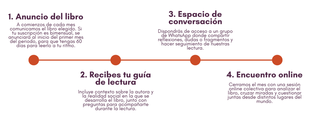 Encuentro online. Un espacio seguro para pensar en colectivo, compartir y conectar experiencias personales con lo que hemos leído.