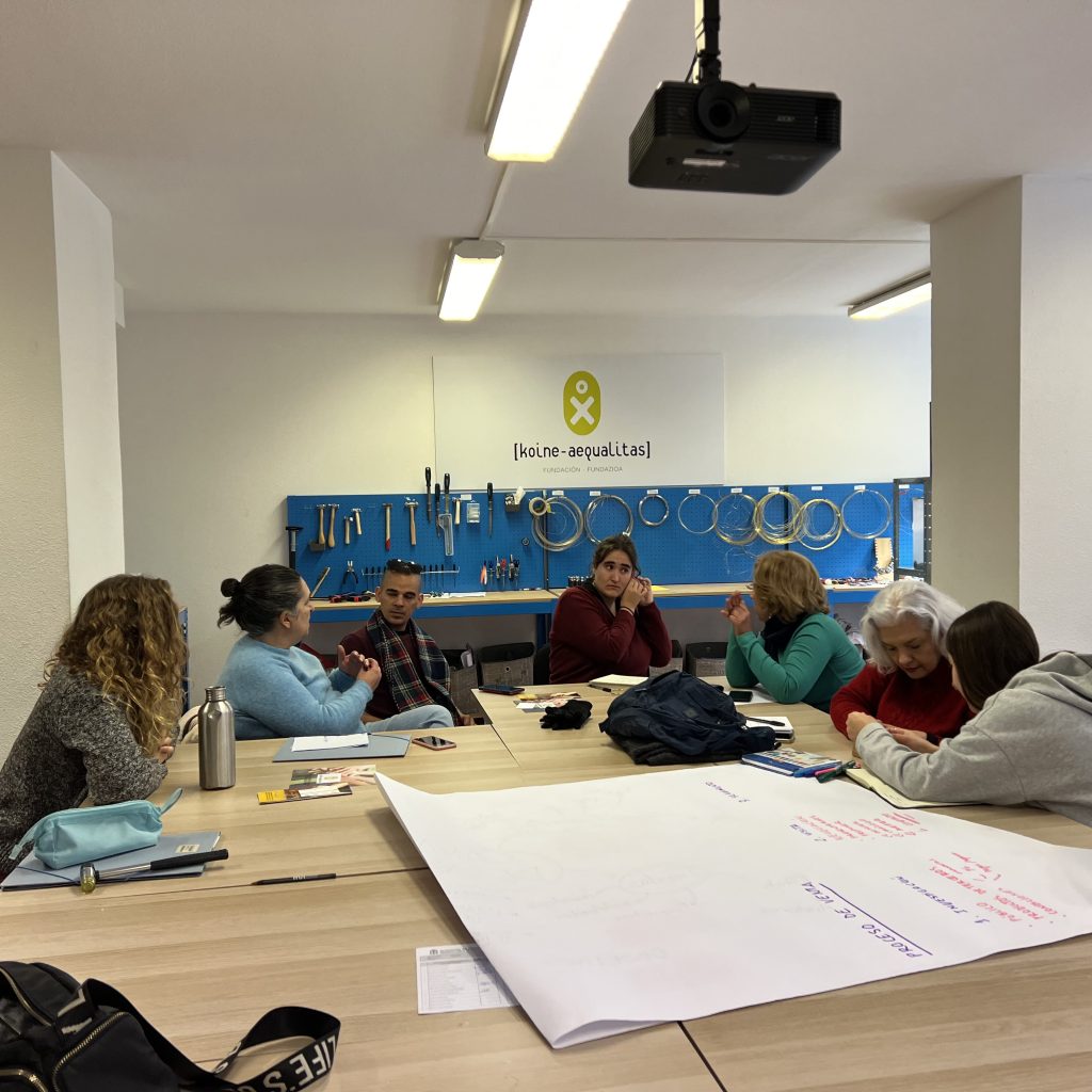 Acompañamiento en emprendimiento en colaboración estratégica con la Fundación Koine Aequalitas y la Universidad de Mondragón. Acompañamos a un grupo de personas en situación de exclusión social y perceptoras de la Renta de Garantía de Ingresos (RGI).